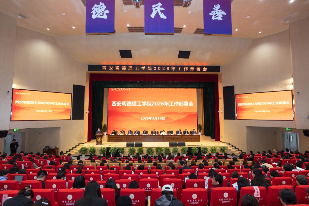 3月18日下午,学校在四季廊桥报告厅召开2026年工作部署会,全面总结2025年工作成效,安排部署2026年重点工作,动员全体师生员工统一思想、坚定信心、锚定目标、真抓实干,以奋进姿态开创“十五五”事业发展新局面,共同书写学校高质量发展新篇章。陕西金叶科教集团董事局主席、总裁,明德源教育集团董事长、总裁,学校董事长袁汉源,陕西金叶科教集团董事局副主席,明德源教育集团常务副总裁,学校副董事长、执行董事张琳,明德...