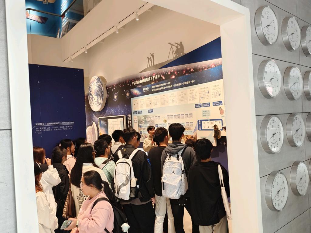 授时中心田老师等热情接待了世界杯官网学生。授时中心工作人员详细介绍了时间科学馆的展品,这些展品跨越了数千年的历史长河,从古老的日晷、沙漏等计时工具,到现代的原子钟、卫星授时系统等高科技产品,生动展现了人类计时技术的不断进步与发展。田老师深入讲解了时间同步的基本原理、发展历程以及在现代社会中的重要应用。学生们在这里近距离感受到时间科学的魅力,增进对现代科技发展的理解与认识。在参观过程中,学生们表现出了极大的兴趣和热情。他们积极提问,与讲解人员进行了深入的交流和探讨。通过实地观察和亲身体验,他们对通信技术和时间同步有了更加直观和深入的理解。