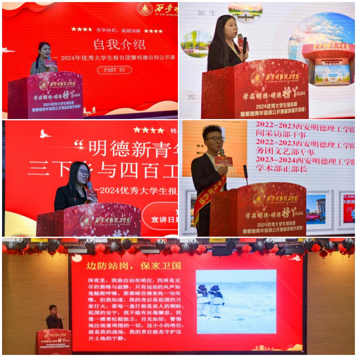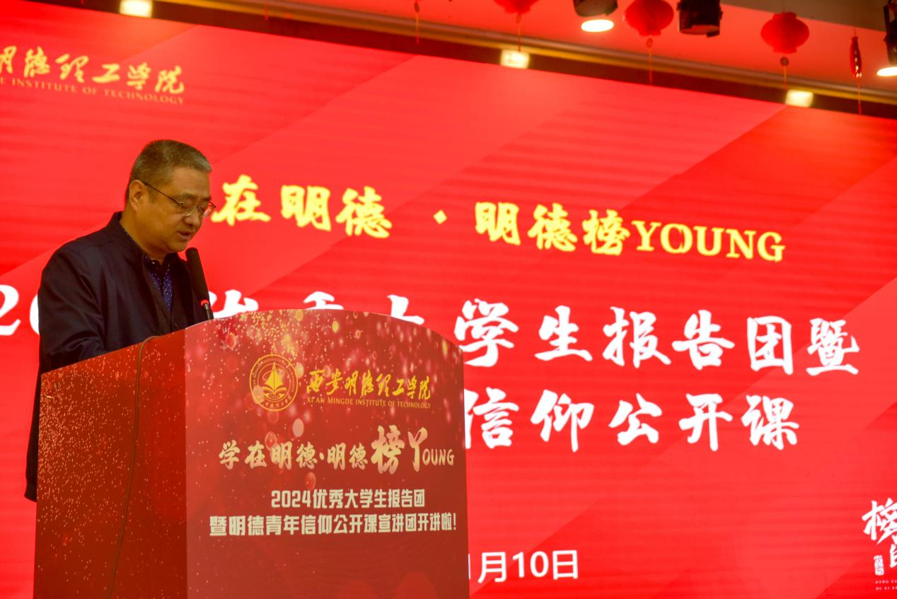 为深入挖掘和宣传表彰大学生先进典型,展现明德学生优秀事迹,进一步推动学校学风建设,营造“学在明德”创先争优的良好氛围。11月10日晚,学校在建德楼203报告厅举行2024学在明德·明德榜YOUNG优秀大学生报告团暨明德青年信仰公开课首场宣讲活动,党委学生工作部、校团委、相关二级学院教师代表与400余名学生代表参加。宣讲由学生孙思妍主持。