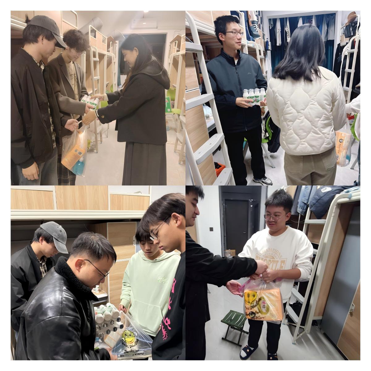 本次活动开始,我院学工干部首先向各学生宿舍送去了洗洁精、洗衣液、晾衣架等慰问品,并向同学们详细介绍了冬季常见传染病的传播途径、症状识别,耐心地向同学们讲解了冬季传染病的预防要点,如勤洗手、多通风、保持个人卫生,在出现发热、咳嗽等症状时应及时就医等。此外,学院全体学工干部同时对学生宿舍内的电器使用情况进行了检查,对个别宿舍电子产品使用不规范、物品归整不合理进行了整改,对插线板的正确摆放、线路的合理规划以及禁止在宿舍内吸烟和使用大功率电器进行了正向引导,对发现可能存在的安全隐患和风险,及时进行处理和化解。