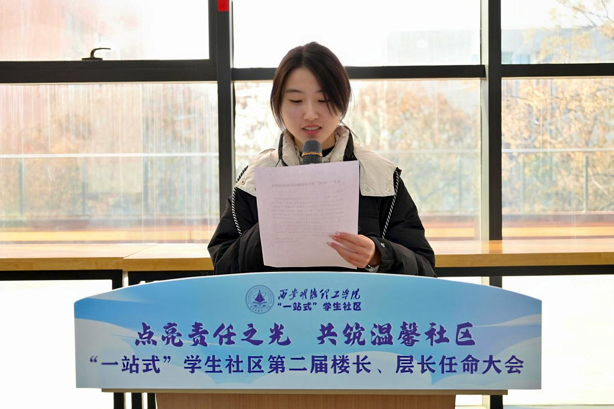 楼层长作为“一站式”学生社区管理和服务的骨干力量,是学生社区治理的重要抓手,此次任命大会有助于楼层长明晰自身工作职责、激发创新活力,我们共同期待新一届楼层长们在新的任期内,能够以更加积极的姿态参与到学生社区服务与管理中,在实践锻炼中,不断为构建和谐、文明的学生社区贡献力量,共同缔造“一站式”学生社区综合育人和全域管理新格局。