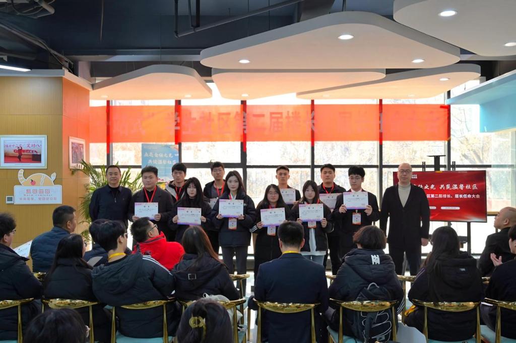 大会伊始,艺术与设计学院党委副书记乔建宣读了《关于“一站式”学生社区楼长、层长任命的决定》文件,本届共有19名同学获聘楼长,103名同学获聘层长。