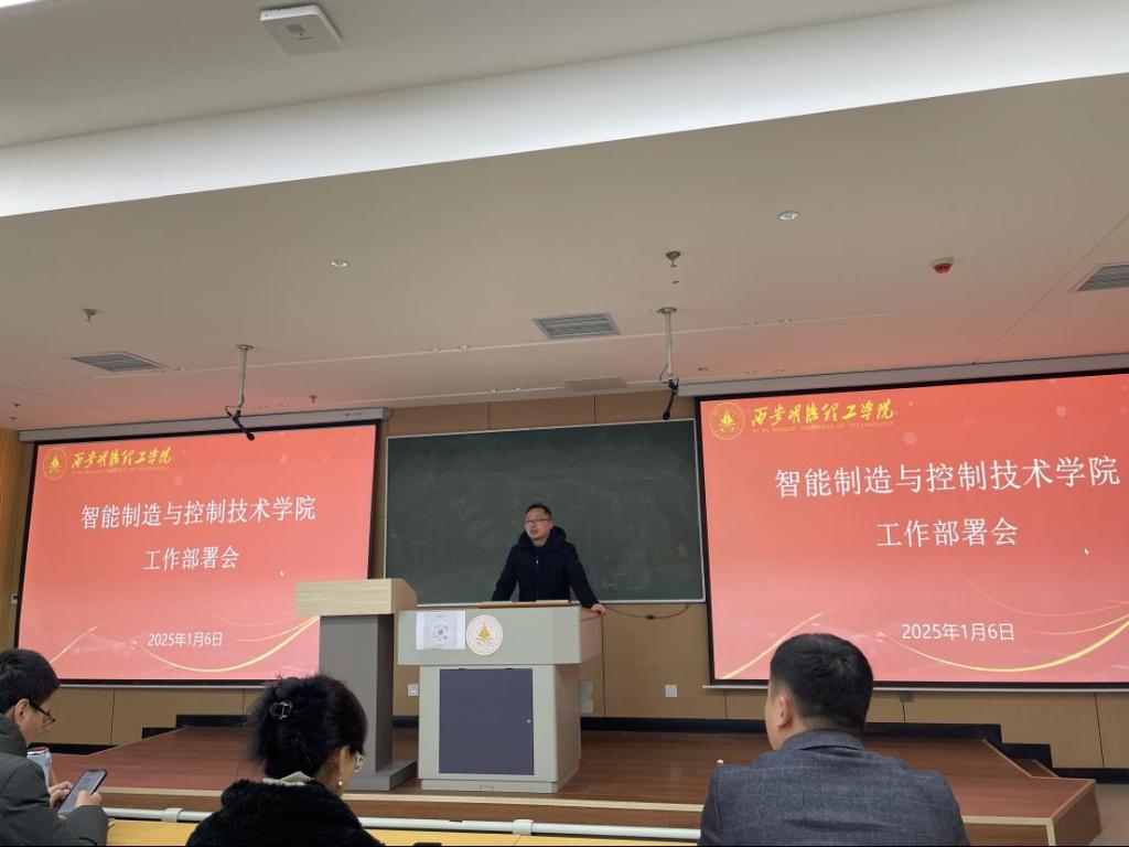 2025年1月6日,智能制造与控制技术学院(以下简称“学院”)在7号楼802召开全院教职工大会暨2024-2025学年第一学期期末工作部署会。此次会议旨在总结过去一年的工作成果,并对即将到来的期末各项工作进行全面部署。学院全体教职工参会,会议由副院长李建勇主持。