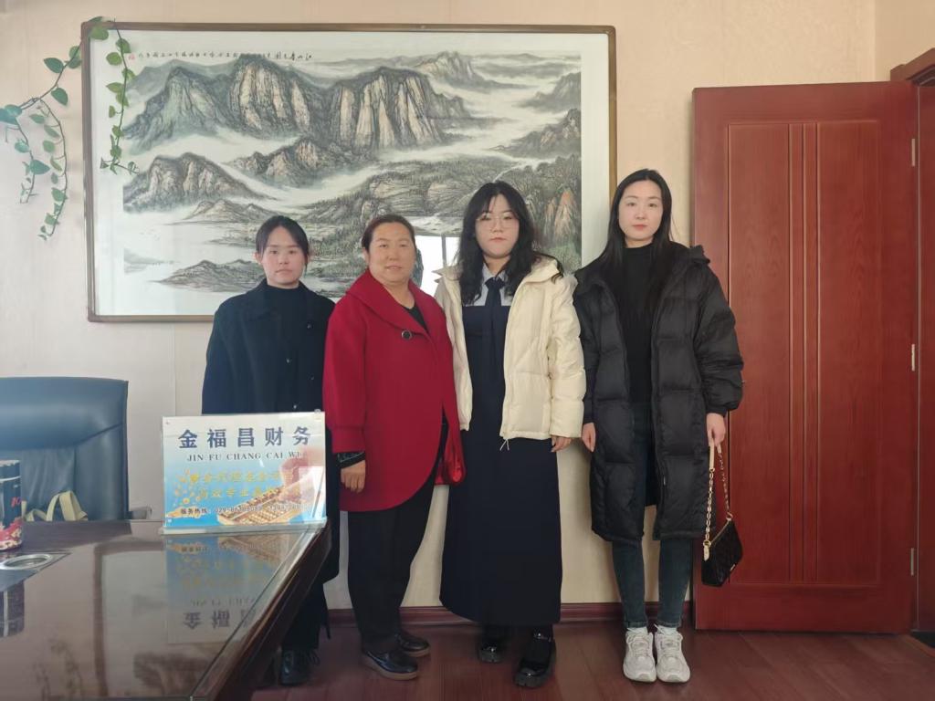在金福昌财务管理有限公司参访期间,总经理吴秀芬从发展历程、企业规模、业务板块、发展现状等方面介绍了企业概况,张爽从学院专业设置、人才培养、取得荣誉、校企合作等方面介绍了学院基本情况。双方围绕校企交流、校园招聘等主题进行了洽谈,为深度合作奠定基础。参访中,学院老师看望了就职于该单位的2025届会计学专业毕业生贾晴晴,勉励学生珍惜工作机会,多向有经验的员工学习,在实践中提升专业技能。