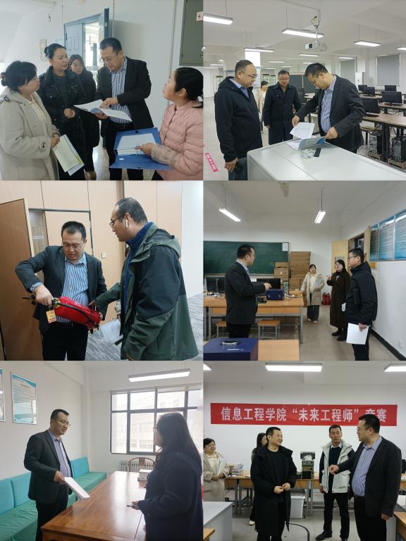 本次检查成立校院两级检查组,采取院级自查与校级检查相结合的方式开展检查工作。在各教学单位前期自查的基础上,校级检查组一行四人对信息工程学院、智能制造与控制技术学院等六个学院及教学技术服务中心的所有实验室的水电线路安全、消防安全、安全检查日志填写、仪器设备检修情况、环境卫生、课表到位等进行了详细的检查。对在检查过程中发现的个别问题,检查组及时反馈并要求在学生开课前积极组织落实整改,保障新学期实验室课程平稳推进。