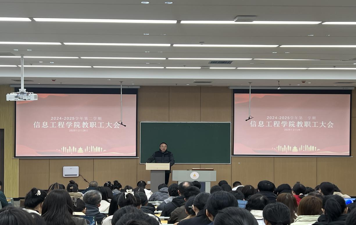 为全面部署新学期工作,明确发展目标,凝聚全院力量,信息工程学院于2月28日在8号楼101教室隆重召开新学期全院大会。学院班子成员出席,全体教职工参加,会议由学院党委书记肖千春主持。