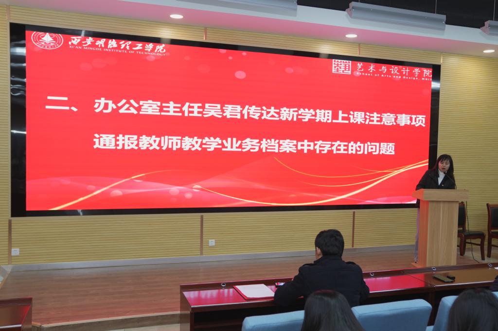 为深入贯彻落实学校相关会议精神,统筹安排部署2025年重点工作,开启艺术与设计学院高质量发展新征程,2月28日下午,艺术与设计学院在建德楼201召开2024-2025学年春季学期工作部署会。学院院长苟秉宸、副院长冯强、党委副书记乔建及全体教职工齐聚一堂,共同展望新学期的目标与方向。会议由冯强副院长主持。