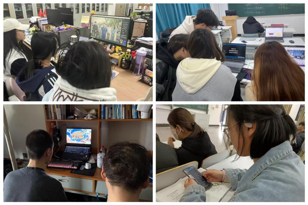 学院领导组织全体辅导员在明理楼216会议室开展集中观看学习。观看过程中,辅导员专注记录火灾隐患排查要点、灭火器材使用规范等实操技能,并就校园安全管理、学生宿舍用电规范等议题展开讨论。学生通过微信公众号、微博等网络平台观看直播,在教室、宿舍等场所灵活开展自主学习。