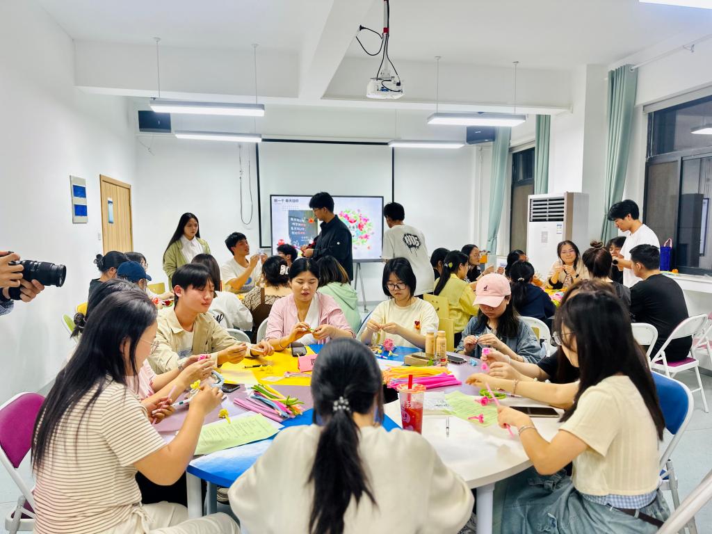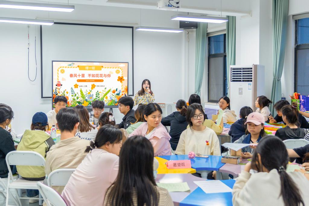 为贯彻落实习近平总书记关于加强学生心理健康教育工作的重要指示批示精神,响应第十届“阳光护航”心理育人宣传季「明心健体・韧性赋能之旅」系列活动号召,引导学生在动手实践里雕琢美、邂逅美,推动美育与心理健康教育深度交融、创新发展。4月16日,信息工程学院在明心楼203开展《“扭一扭”春风十里不如花花与你》心理团辅活动,用花意传心声,互换送温暖。活动吸引全校40多名学生热情参与。