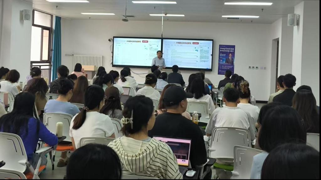4月18日下午,在学校8号教学楼503教室,教师发展中心举办了以“DeepSeek赋能教学及科研能力提升”为主题的工作坊,邀请了秋叶集团AI资深讲师于渊博士担任主讲人,吸引了90余教师积极参与,反响热烈。