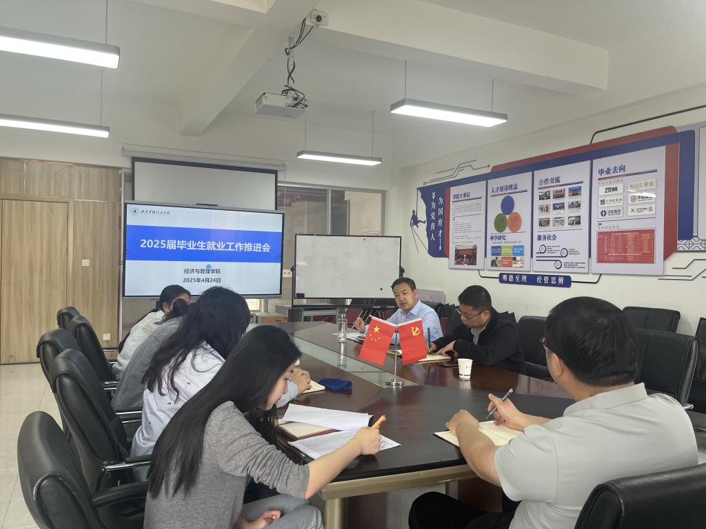 为进一步做实做细就业工作,确保2025届毕业生充分高质量就业,4月24日,经济与管理学院在明志楼北606会议室召开2025届毕业生就业工作推进会。学院党委书记兼行政副院长何文举、学校招生就业中心就业办公室主任王育春、学院2025届毕业班辅导员参加了会议。会议由何文举主持。