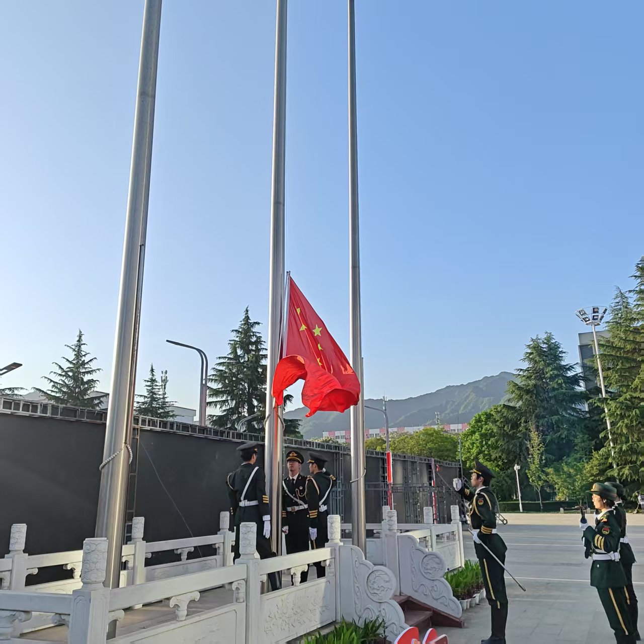 4月28日,以“青春‘燃’起来:让健康成为新时代青年的标配”为题的国旗下微课堂爱国主义教育系列活动在学校中心广场进行。党委学生工作部老师,经济与管理学院师生代表参加升旗活动。