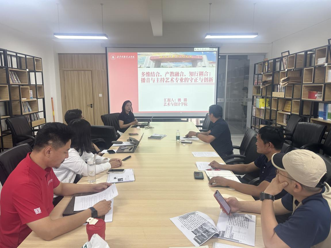 传媒类专业负责人姚璐老师以“多维结合、产教融合、知行耦合:播音与主持艺术专业的守正与创新”为主题话专业蓝图。汇报了专业建设中构建“三进、三融、三提升”的专业建设思政体系;以“传统文化+现代教育”交叉融合为特色,构建“一体两翼、三个资源、四个课程体系、五个平台”四维课程体系等,全面展示了播音与主持艺术专业的教育教学成果。