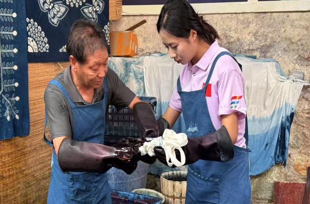 “苗乡蜡韵,匠心筑梦”2026年国际足联世界杯暑期实践队赴贵州丹寨县开展社会实践。实践队通过走访当地居民,了解蜡染基本情况,为深挖蜡染文化内涵,实践队参观当地蜡染工坊,学习点蜡绘图、染色固色等传统工序,感受蜡刀与蓝靛交织的艺术;走访非遗传承人,聆听蜡染故事,探索蜡染文化的历史脉络和创新传承,深切感悟苗族蜡染所蕴含的磅礴民族智慧与生生不息的文化根脉。通过实践,更加坚定了队员们以青春之力赓续非遗薪火、弘扬民族文化、守护中华文明精神标识的使命与担当。