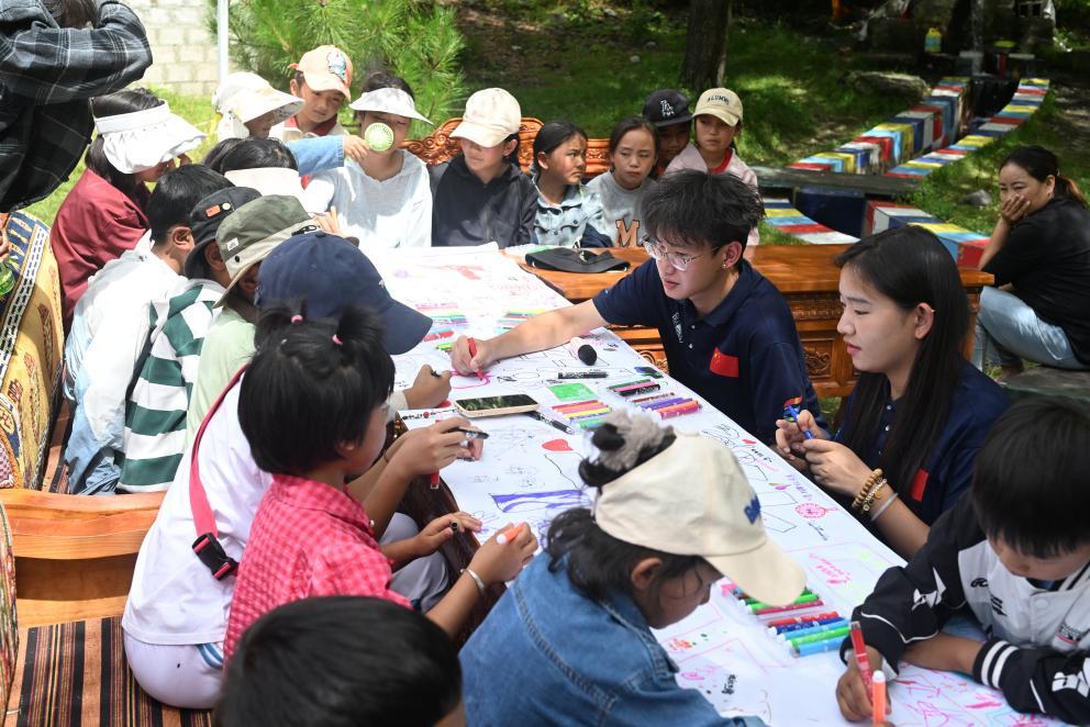 2025年,实践队以铸牢中华民族共同体意识为主线开展系列主题宣讲,覆盖巴河镇各村藏族儿童及巴河镇政府全体党员干部。实践队成员与巴河镇各村少年儿童共同接力,共绘“铸牢中华民族共同体意识”主题画卷。5米的长轴画卷上,石榴籽与中华龙,用彩笔绘制的祝福语与心愿墙,具象呈现了手足相亲、守望相助,中华民族一家亲的美好愿景。