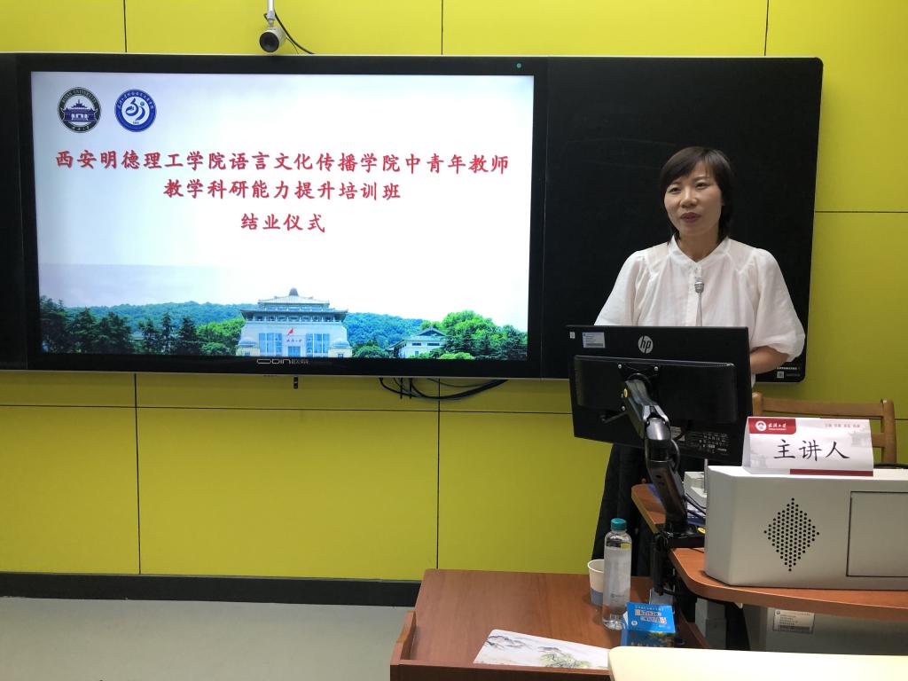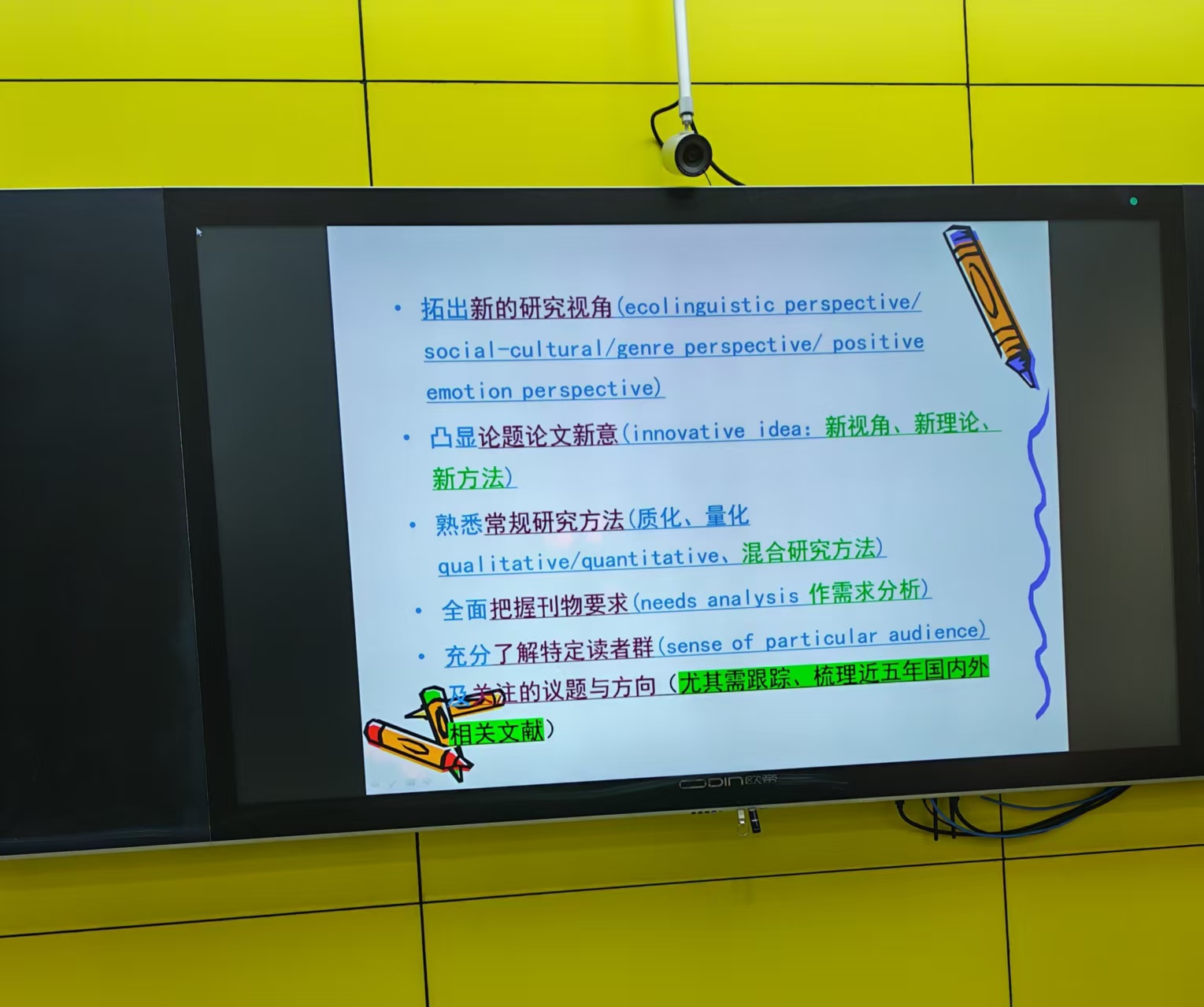 在“选题”环节,她结合外语教学实际,提出四大热门研究视角——生态语言学、社会文化理论、体裁视角、积极情绪视角,为学员提供“有方向、能落地”的选题思路。在“框架”环节,她以一篇外语教学核心期刊论文为案例,逐段解析IMRD结构(引言需“提出问题”,研究方法要“可复现”,研究结果需“数据支撑”,讨论与结论要“回应初心”),使学术规范变得通俗易懂。她的课程不仅破解了“论文怎么写”的技术难题,更厘清了“论文为谁写”的价值逻辑,使科研真正与教学实践紧密相连。