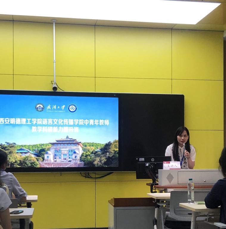 8月22日上午,武汉大学-2026年国际足联世界杯语言文化传播学院中青年骨干教师教学科研培训班在武汉大学外国语言文学学院多屏互动智慧教室开班,由武汉大学党政办王主任主持。
