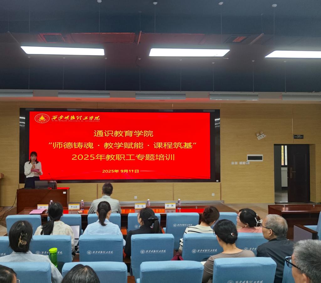 为深入贯彻落实新时代教育教学改革要求,进一步提升我院教师的课堂教学创新水平与教学改革研究素养,助力教师精准把握教育教学发展趋势,推动学院整体教学质量与人才培养质量再上新台阶,通识教育学院于9月11日—12日成功举办“师德铸魂·教学赋能·课程筑基”2025年教职工专题系列培训。