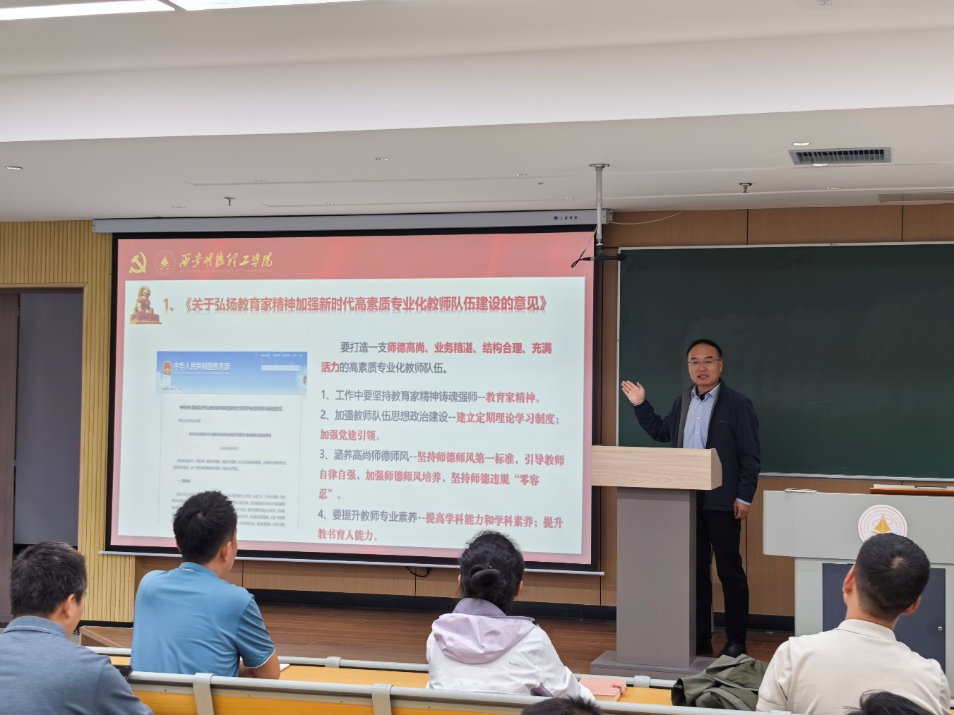 会上,肖千春书记带领大家集中学习了《关于弘扬教育家精神加强新时代高素质专业化教师队伍建设的意见》、习近平总书记关于教育的重要论述、对教师职业道德的要求以及《新时代高校教师职业行为十项准则》。