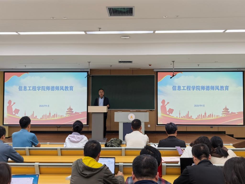 为深入学习贯彻新时代教师队伍建设的新要求,全面提升教师思想政治素质和职业道德水平,9月19日,信息工程学院在8#402召开全院师德师风教育大会。大会由学院党委书记肖千春主持,全体教职工参加。