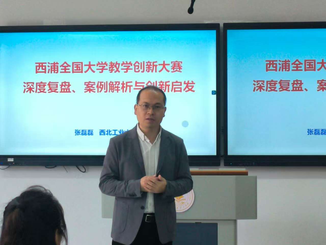 培训中,张磊磊教授围绕“西浦教创赛的深度复盘、案例解析与创新启发”这一主题,深入剖析了西浦大赛的核心理念,详细讲解了如何有效设计大赛文件撰写、合理规划备赛时间等关键环节。他通过一系列生动具体的案例,引导教师们深入理解大赛的评审标准和创新要点,为大家提供了宝贵的备赛策略和实操技巧。在谈到课程思政的独特创新设计时,张磊磊教授强调,要将思政教育自然融入专业课程之中,实现知识传授与价值引领的有机结合。他结合自己获奖作品,让大家对创新的理念和实践又有了新的认知和理解。他的分享既有理论高度,又贴近教学实际,让参训教师深受启发。