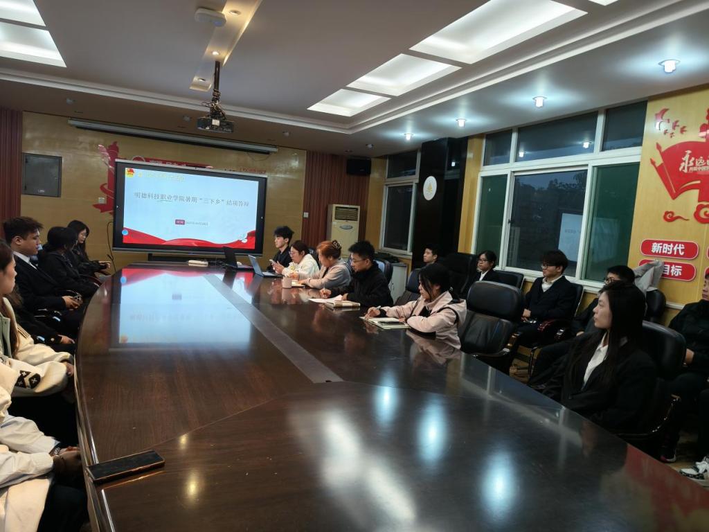10月20日,明德科技职业学院暑期“三下乡”社会实践活动结项答辩会在明理楼216会议室举行。此次答辩旨在全面总结实践经验、展示实践成果,推动学院实践育人工作高质量发展。学院党总支副书记王飞、团委书记郭庆、王会霞老师参加,会议由吴秋月老师主持。