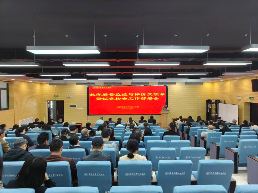 为深入贯彻学校内部质量保障体系,加强主要教学环节的质量监控,落实质量管理闭环。10月29日中午,质量管理与评估办公室在建德楼201会议厅组织召开了教学质量监控与评价反馈会暨试卷检查工作部署会。会议由质量与管理评估办公室主任张瑜主持,各二级学院教学副院长、办公室主任、教研室主任、专业负责人代表、校院教学督导、党委学生工作部、教师发展中心等相关人员、质评办全体人员,共计80余人参加了会议。