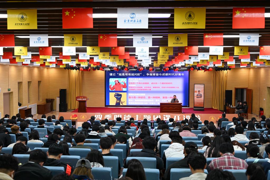 11月6日晚,学校“四季明德”主题团课第一讲在学校顺利开讲。校团委副书记刘雄担任主讲人,校级团学组织学生干部、各二级学院团委及学生会学生干部代表共计400余人参与本次学习。