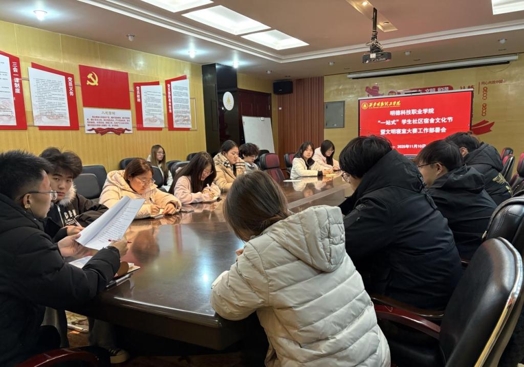 随后,会议围绕活动展开详细部署,明确具体流程、任务分工与评比标准。本次宿舍文化节设置宿舍美化设计、文化展示、文明寝室评选等环节。其中,文明寝室大赛将从卫生、安全规范、文化建设等多维度综合评比。系列活动以赛促建,致力于推动“一站式”学生社区建设,让宿舍化身学生思想教育阵地、文化乐园与成长港湾。