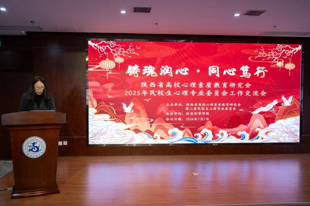 2026年1月7日下午,通识教育学院组织30余名师生参加了陕西省高校心理素质教育研究会2025年民校生心理专业委员会工作交流会。本次会议以“铸魂润心·同心笃行”为主题,由陕西省高校心理素质教育研究会和第二届民校生心理专业委员会主办、民校生心理专委会轮值主任委员单位西安外事学院承办,来自全省18所民办高校的领导及教师参会,共同探讨心理育人与艺术疗愈融合发展的创新路径。本次会议由西安外事学院心理健康教育中心主任王玉琴主持。