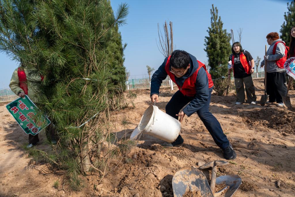 本次活动是团省委落实《“美丽中国·青春行动”方案(2024—2028年)》、迎接第25个“保护母亲河日”的重要举措,主题为“保护母亲河·青年在行动”。活动现场,来自全省各高校、企业和社会组织的青年志愿者们分工协作、配合默契,挥锹铲土、扶苗围堰、提水浇灌,每道工序都一丝不苟,现场一派热火朝天的劳动景象。学校学生志愿者们充分发扬吃苦耐劳的精神,经过两个多小时的辛勤劳作,新栽的苗木在春风中挺立,为初春的大地增添了勃勃生机。