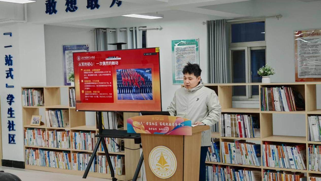 李雨璇以“厚植于思 深耕于学 奔涌于行”为题,分享专业钻研与实践成长的历程,鼓励同学们以学为基、笃行不怠;孙斯妍讲述自我突破的蜕变故事,展现青年从迷茫到坚定的成长轨迹;耿子越以鸿鹄之志、骐骥之跃,传递逐梦前行的青春姿态;董俊深情诉说投身国防的初心,彰显青年家国担当;朱广琛分享志愿服务与自强实践之路,诠释志愿精神内涵。