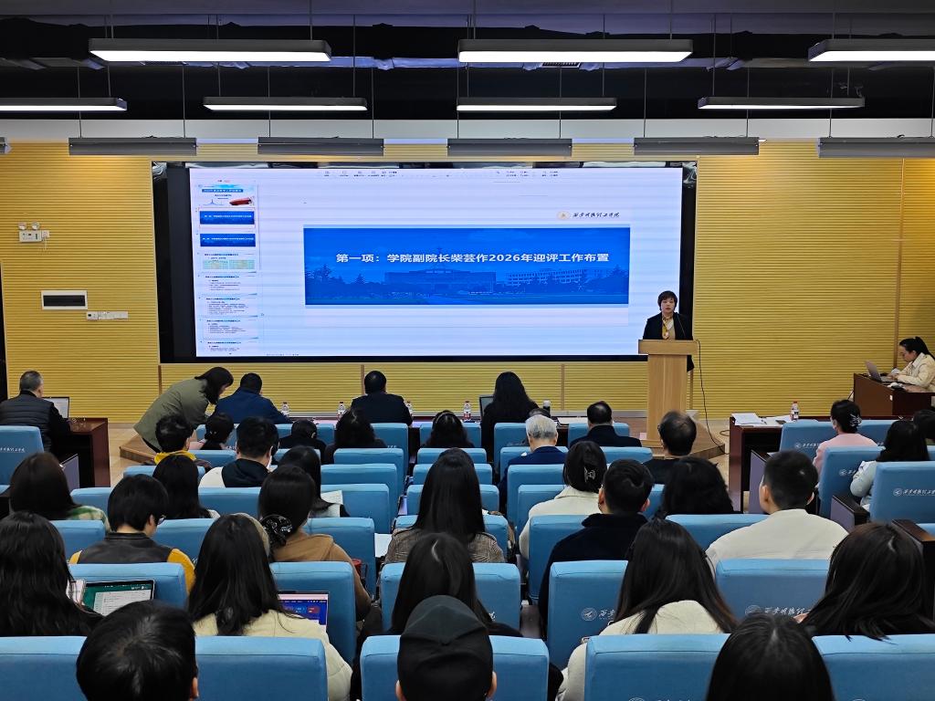 会上,学院副院长柴芸首先发言,详细解读了本次迎评工作实施方案(含时间表、路线图共19点)。她逐一明确19项具体任务的核心要求、推进步骤和时间节点,厘清迎评工作重点方向,要求全体教师提高重视、严格落实,对照19点路线图细化工作举措,确保迎评各项准备工作有序推进、落地见效,为学院顺利通过评估筑牢基础。