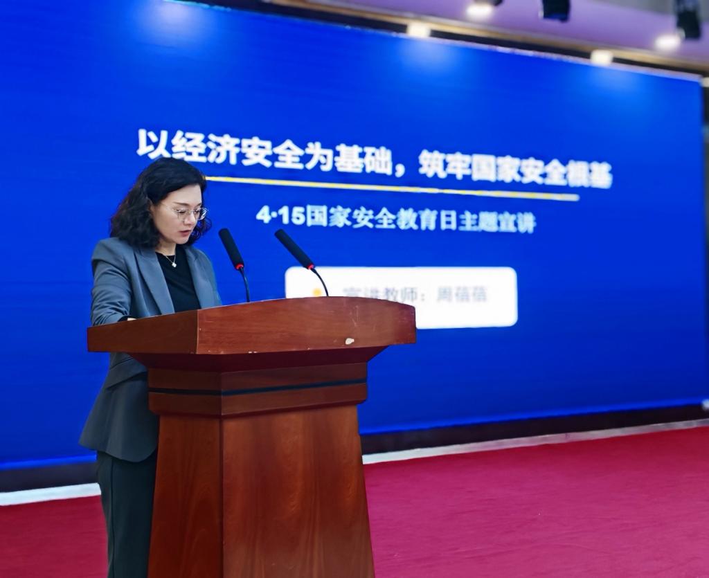 周蓓蓓老师的宣讲则围绕“以经济安全为基础,筑牢国家安全根基”的主题,系统阐释经济安全五大核心内涵。宣讲中,她有力批驳西方“国进民退”等错误论调,结合晚清丧失经济主权的沉痛历史教训以及反垄断等典型实践案例,深刻阐明必须坚守我国基本经济制度、坚决维护国家经济主权、持续规范市场运行秩序,切实保障金融、粮食、产业链供应链等关键领域安全稳固。