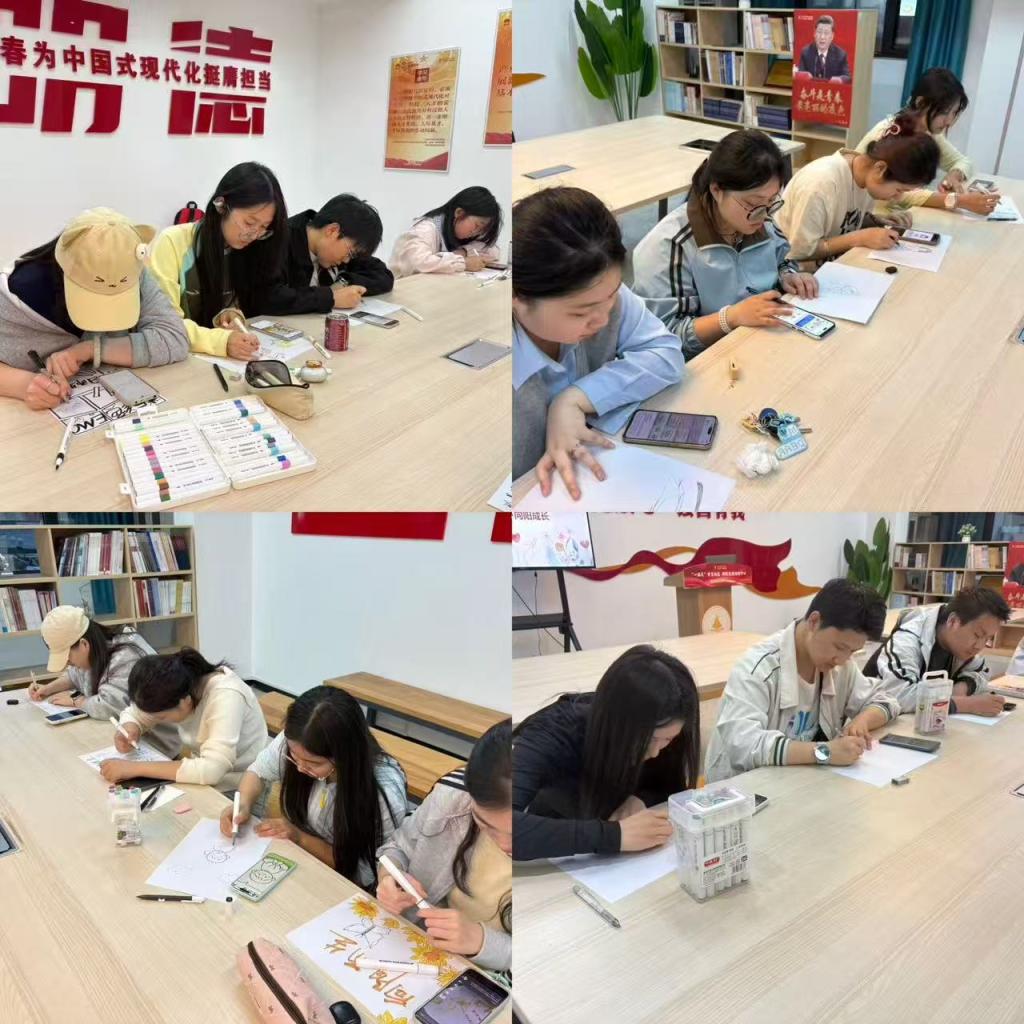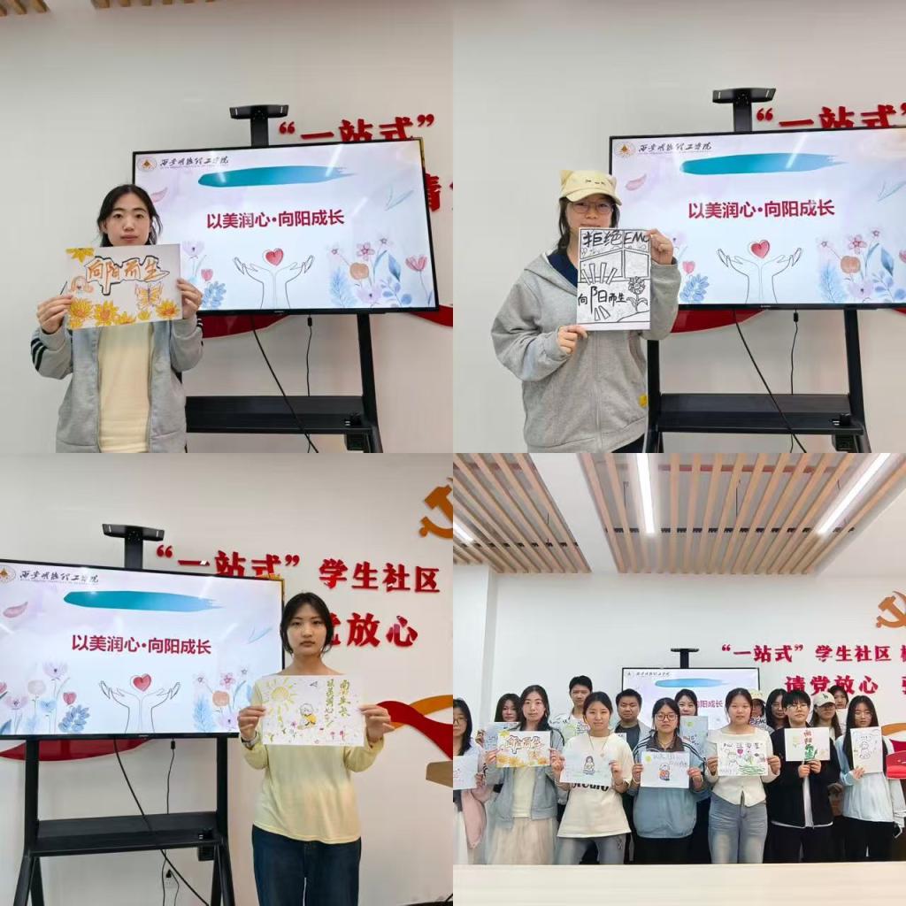 活动中,同学们以画笔为媒,在色彩与线条中释放情绪、表达期许,用创意绘就青春成长的温暖画卷。大家结合自身对心理健康的理解与成长感悟,或勾勒明媚阳光、盛放向日葵,传递积极向上的人生态度;或绘制细腻插画、暖心寄语,倾诉内心世界的柔软与力量;还有同学以“拒绝EMO”“向阳而生”等鲜活主题入画,用生动的画面展现青春风采。每一幅作品都饱含真挚情感,既有对美好心境的描绘,也有对成长之路的坚定,充分彰显了新时代大学生积极乐观的精神风貌与丰富的艺术创造力。
