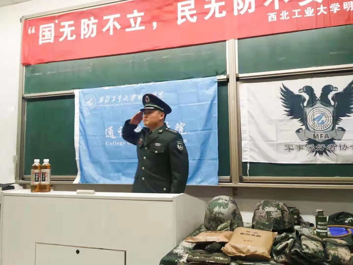 11月14日晚,建德楼204教室,通识教育学院邀请西安陆军预备役部队赵羽上尉为同学们做了主题为《中国国防及当代单兵装备介绍》的知识讲座。教务科研部副部长李波、通识教育学院党总支书记李传斌、经济与管理学院祝卫杰老师参加此次讲座。