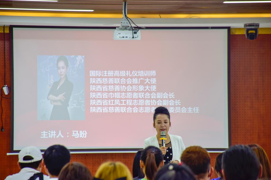 为了更好的服务新生,提高迎新志愿者的服务意识、服务质量和服务水平,顺利完成迎新工作。学院于9月3日在明志楼311学术交流中心举办了2020年迎新志愿者培训工作会。国际注册高级礼仪培训师、陕西慈善联合会推广大使、陕西省巾帼志愿者联合会副会长、陕西省慈善联合会志愿者工作委员会主任马盼老师为迎新生志愿者师生作了题为《志愿者精神和志愿者礼仪》的专题培训,培训会由童杨梓主持。