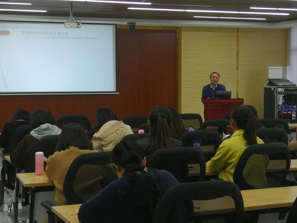 蔡老师以教学基本功之备课技巧与实践为题,结合多年教育教学经验,对备课这一基础教学环节进行详细、深入的讲解。蔡老师从影响教学有效性的主要因素导入,从激发学生学习兴趣、关心学生需求等角度提出建议。在对备课进行基础分析之后,依次分享了备课实践中涉及的学习目标的制定、教学流程设计、教与学的方法选择、教学情景选择、教学导入设计、课堂提问设计、教学媒体选择与板书设计等心得体会。蔡老师还强调了备课过程中需要注意的问题,提醒大家务必做到知己、知彼、知纲、知书。最后列举了备课中常见的误区,告诫大家不可忽视学生作为学习主体的存在,要注重区别对待、因此施教,不可忽视课程在学科体系中的位置。课后蔡老师对大家在备课及教学中遇到的问题进行了解答。