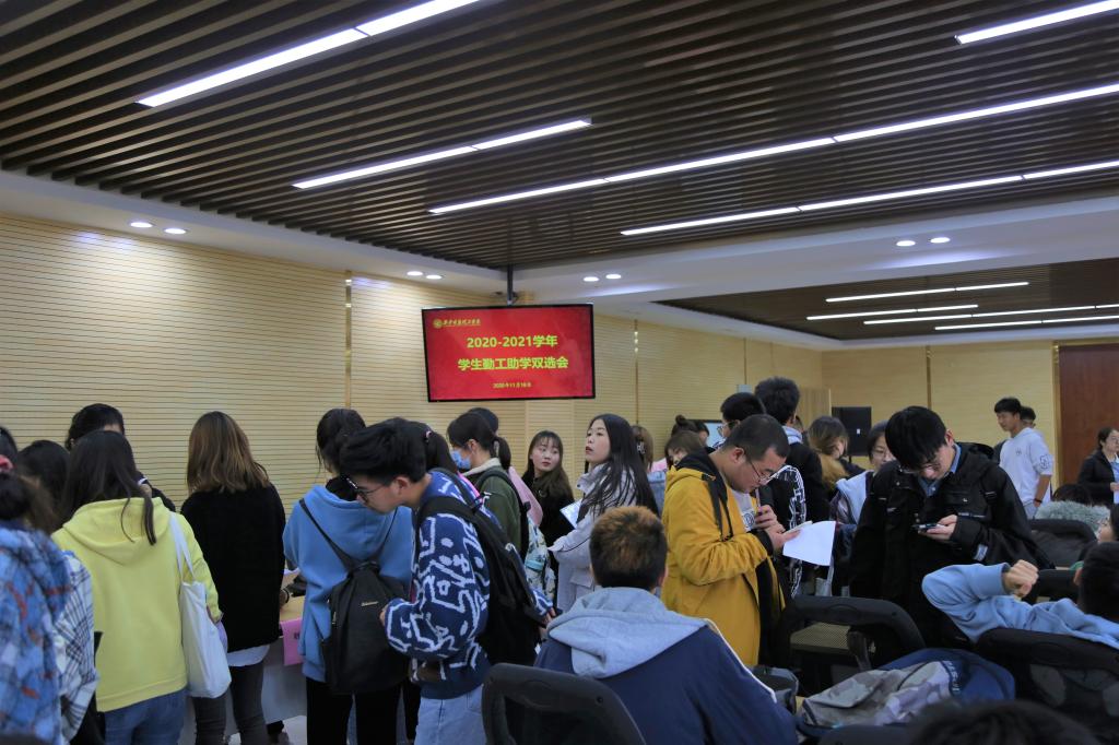 11月18日中午,学院学生资助管理中心在明志楼311学术报告厅举办学生勤工助学岗位双选会,学院职能部门和二级学院提供的106个勤工助学岗位面向全院学生进行公开招聘,双向选择,择优上岗。