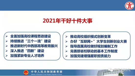 本次会议对高等教育相关工作进行了动员部署,是对高等学校2021年教育教学工作的指引,学校将认真学习、贯彻落实会议精神,结合学校实际,深入推进一流专业、一流课程、课程思政、创新创业等教育教学工作建设,为加快构建高质量教育体系贡献力量。