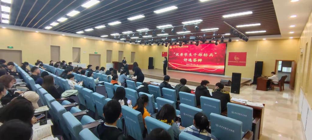 为促进新一代青年领悟“五四”精神内涵,展现当代青年学生风采,传播青春正能量,4月1日,学校团委在建德楼203举办了2021年“模范共青团院”、“优秀共青团干部标兵”、“优秀学生干部标兵”(以下简称:五四标兵)评选答辩。校团委老师、各二级团工委书记、支部书记代表、学生干部代表及30余位公开招募的大众评委参加大会。