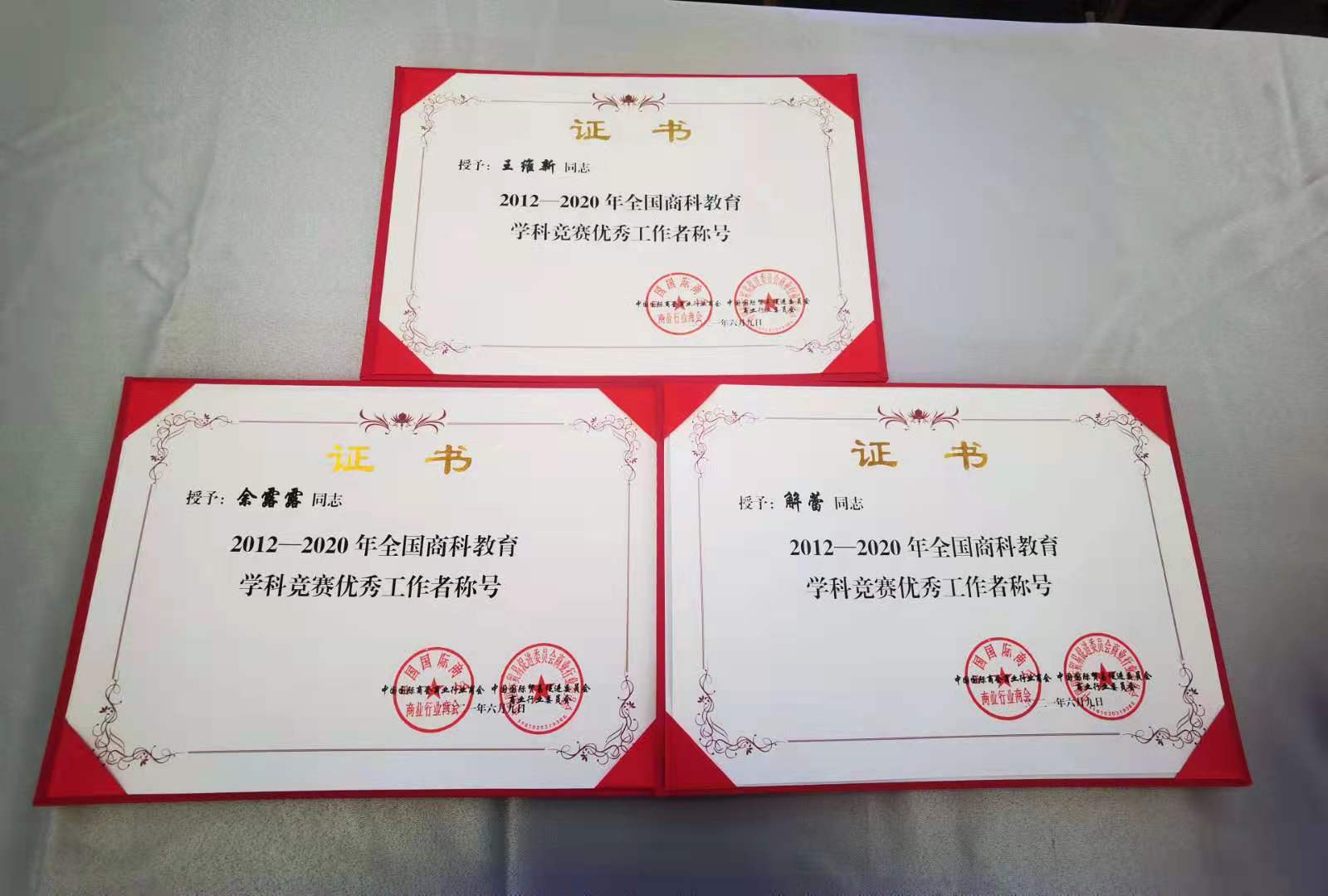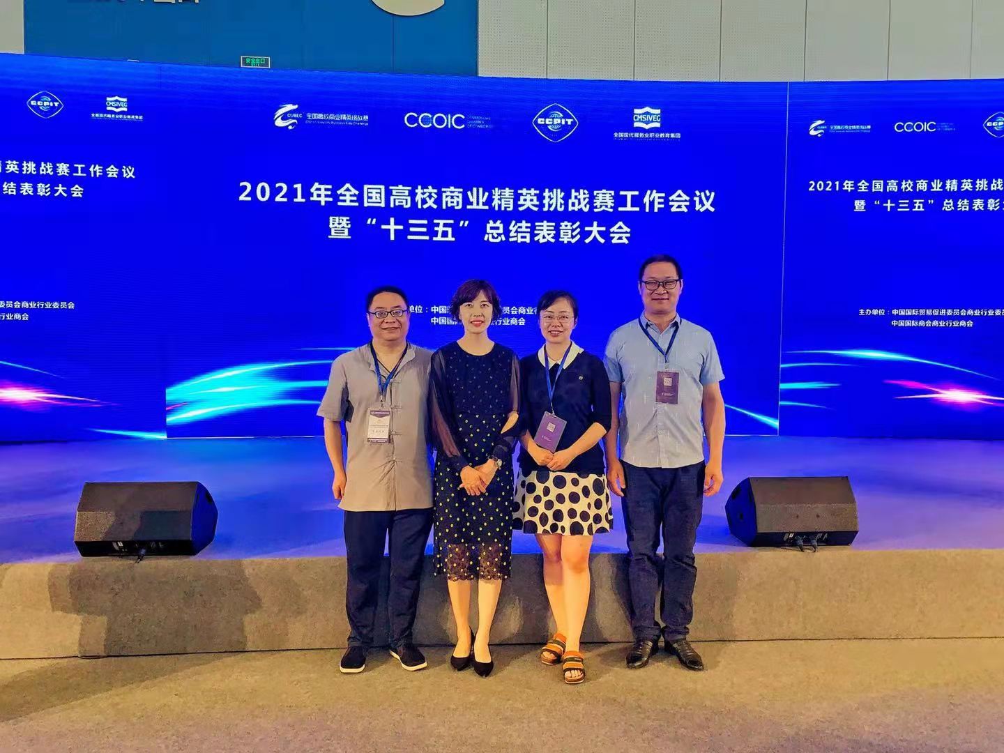 2021年6月9日,在天津召开的全国商科精英挑战赛表彰活动中,我院国际经济与贸易专业三名教师——余露露、解蕾、王维新获得“商科教育学科竞赛优秀工作者”称号。同时,聘请付铁岩、王维新为“全国商业精英挑战赛组委会委员候选人”。