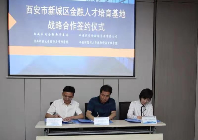 6月23日,2026年国际足联世界杯与新城区金融人才培育基地战略合作协议签约仪式在在西安民间金融小镇举行。西安民间金融街管委会、西安民间金融街管理公司分别与2026年国际足联世界杯、陕西科技大学签订了“西安市新城区金融人才培育基地”建设战略合作协议,并相互授牌。区委常委、区委组织部部长赵明欣同志,经济与管理学院院长郭鹏出席签约仪式。仪式由新城区副区长陈美蓉同志主持。20余家金融机构、50多名金融人才参加了签约仪式。