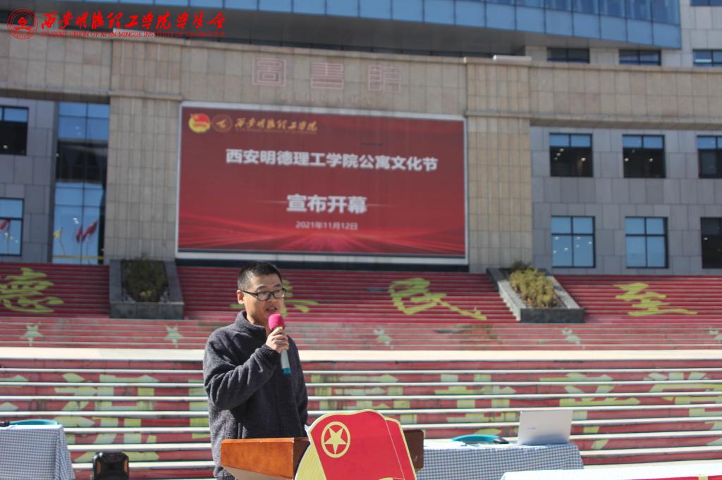 开幕式伊始,校团委刘雄老师宣读了《关于开展公寓文化节的通知》,本次公寓文化节包括“‘寝’近生活,定格美好”寝室生活Vlog征集活动 ;“‘寝’投意合,‘室’情画意”寝室装饰活动;“匠心巧设,展‘室’风采”寝室旧物DIY比赛 ;“爱拼才会赢”跳大绳比赛 ;“我心中最美的阿姨”系列评选活动 ;以及“寓’见心安”寝室建设意见座谈会等六个系列活动。