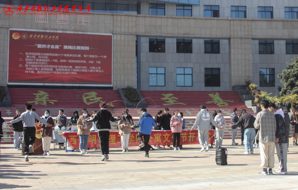 最后,校纪委副书记、高等职业技术学院党总支书记王君涛老师宣布公寓文化节正式开幕。开幕式结束后,举行了首个系列活动“爱拼才会赢”跳绳比赛。