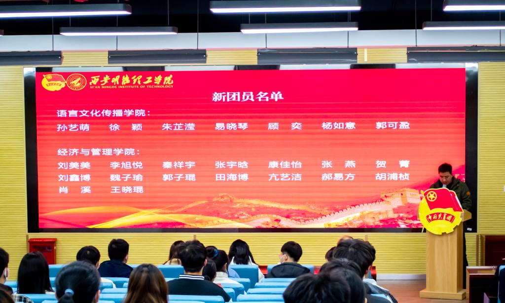 入团仪式由奏唱中国共产主义青年团团歌拉开帷幕,仪式分为《团章》基本内容介绍、宣布新团员名单、佩戴团徽、团员宣誓、新团员代表发言等6个环节,所有环节紧凑有序、庄严隆重。