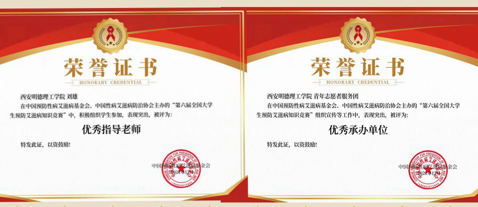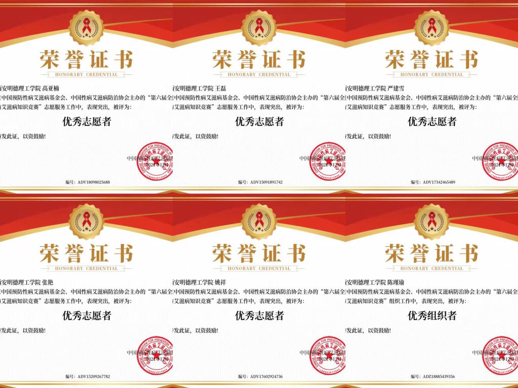 为落实《“健康中国2030”规划纲要》,进一步推进艾滋病防治工作,践行《中国遏制与防治艾滋病“十三五”行动计划》中关于“持续加强重点人群宣传教育”以及“积极发挥学生社团、青年志愿者等的作用,2021年,世界杯官网青年志愿者服务团承办了由中国预防性病艾滋病基金会、中国性病艾滋病防治协会主办的“第六届全国大学生预防艾滋病知识竞赛”,学校956位同学积极参赛,取得了良好的成绩,其中世界杯官网青年志愿者服务团被评为“优秀承办单位”,校团委刘雄荣获“优秀指导教师”称号,陈瑾瑜等3人荣获“优秀组织者”称号,严建雪等7人荣获“优秀志愿者”称号。