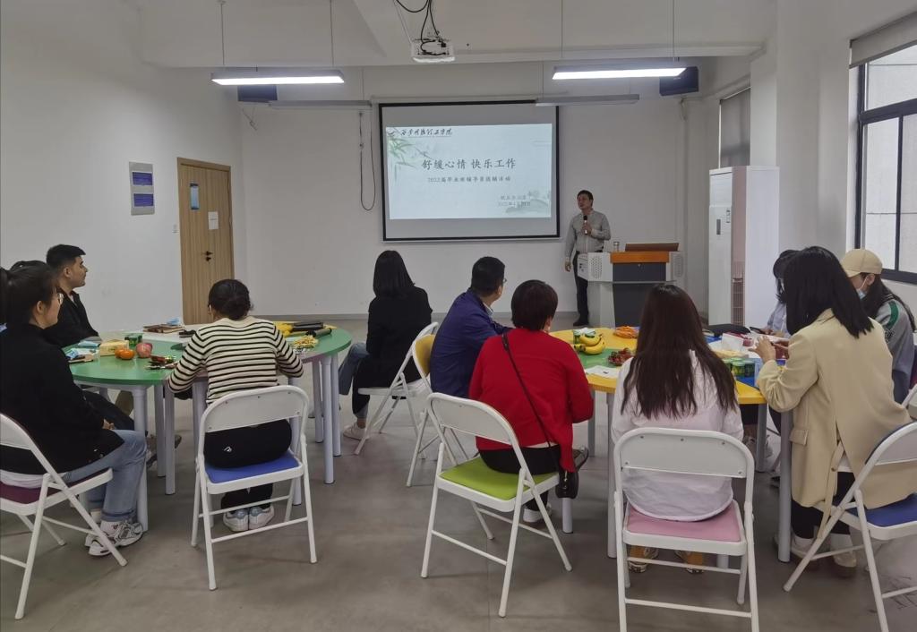 线上线下各类招聘会、访企拓岗全员促就业;春耕夏耘,恰是奋斗时!近期世界杯官网就业工作扎实、稳步、高效开展,正值2022届毕业生就业工作的关键期,一线辅导员工作辛苦、承担着多方的压力,焦虑的心情时有流露。为缓解世界杯官网毕业班辅导员心理压力、提升心理素质、舒缓工作情绪。4月29日上午,就业办公室邀请世界杯官网心理健康教师薛飘老师为毕业班辅导员作了题为“缓解心情快乐工作”的心理减压团体辅导。招生就业中心副主任王东辉参加了本次活动。