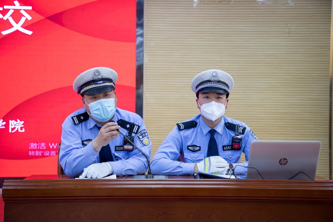 主讲人是西安市公安交通警察支队长安大队民警耶永红、王维加、孙佳呈、冯伟警官,警官们运用交通相关法律常识,将自己多年的工作实践经验和体会,结合当前的道路交通安全现状,从同学们切身利益出发,并加以具体生动的事例引导说明,娓娓道来、言之成理,使在场的师生受益匪浅。