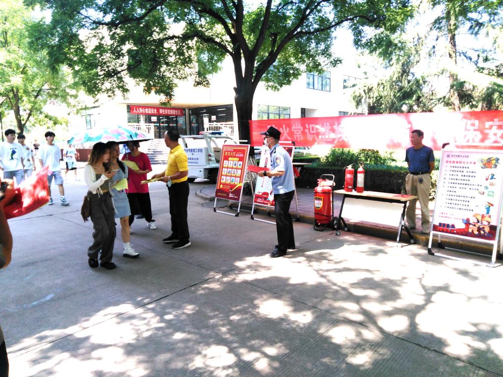 为进一步树立“安全第一”的思想意识,增强学校防灾减灾应急救援能力,后勤管理处于6月15日上午,在学生公寓区域举行题为“防火常识进校园自防自救保安全”的消防知识宣传活动。